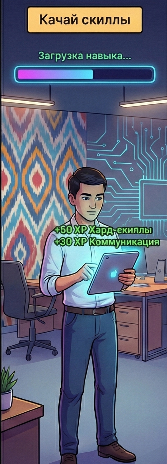 Качай скиллы: На работе важно прокачивать свои навыки, чтобы не только повысить эффективность, но и получать удовольствие от того, что делаешь. Социальные скиллы, хард-скиллы, личные качества — всё это твои прокачиваемые характеристики, которые помогут стать настоящим профессионалом!
